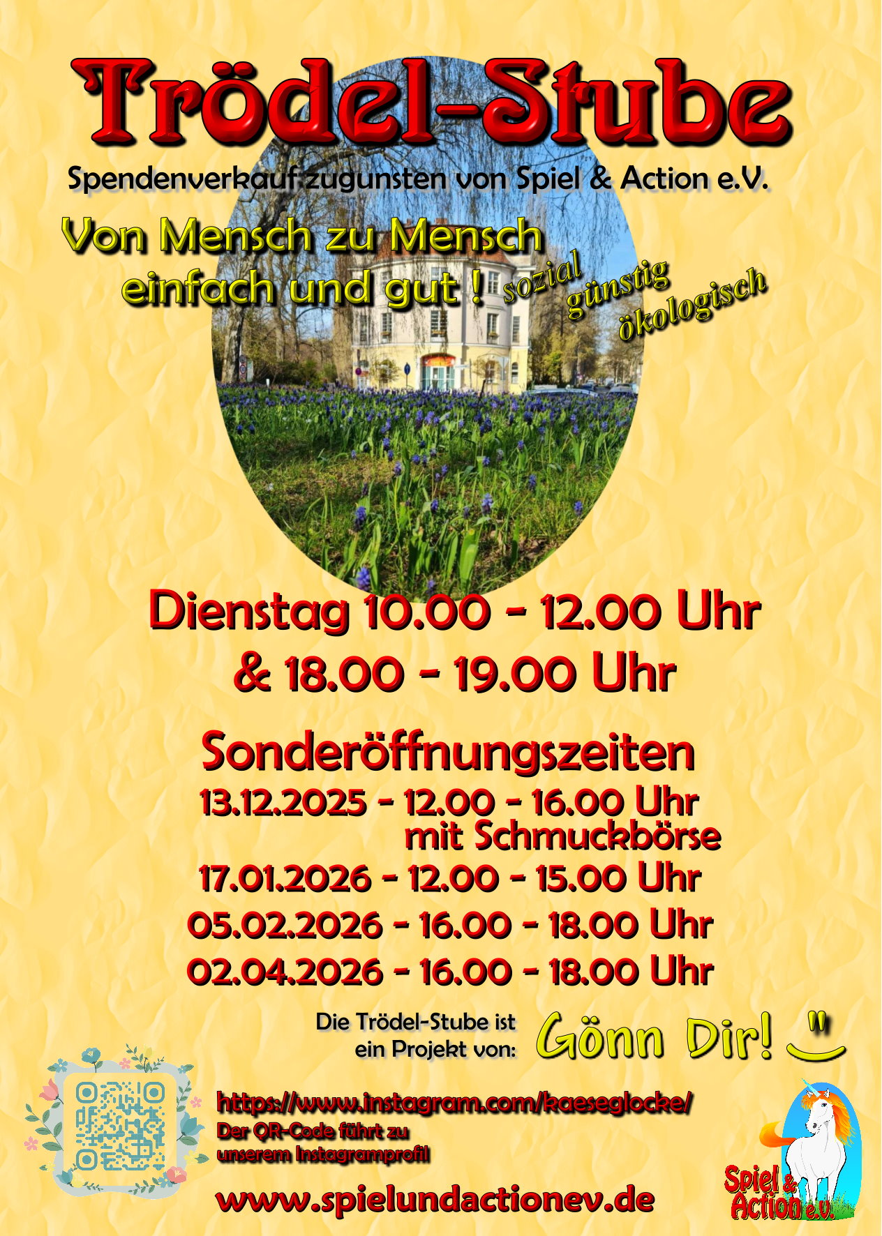 Wir sind wieder am Start! Der Trödel-Basar ist nicht nur in neuen Räumen, sondern hat auch einen neuen Namen. Die Trödel-Stube hat ihre „Hallen“ geöffnet.